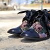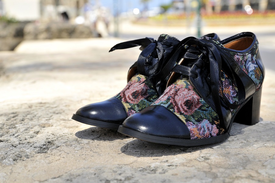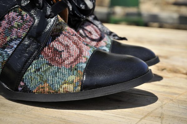 שילוב עור עם רקמת גובלן פרחונית .שרוך סאטן שחור. עקב 5 ס"מ, זמין במידות 33-45