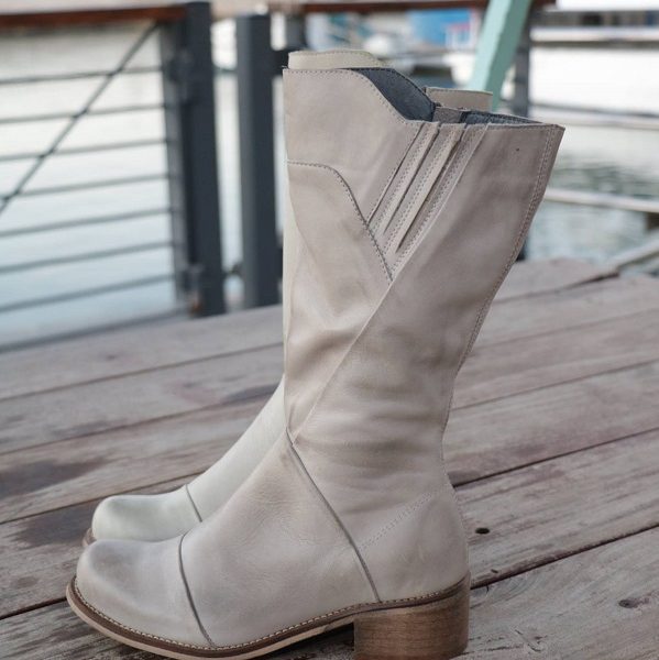 מגף טלאים גבוה עם עקב 5 ס"מ. קיימת אופציה להרחבת היקף השוק באמצעות גומי נסתר. זמין במידות 33-45