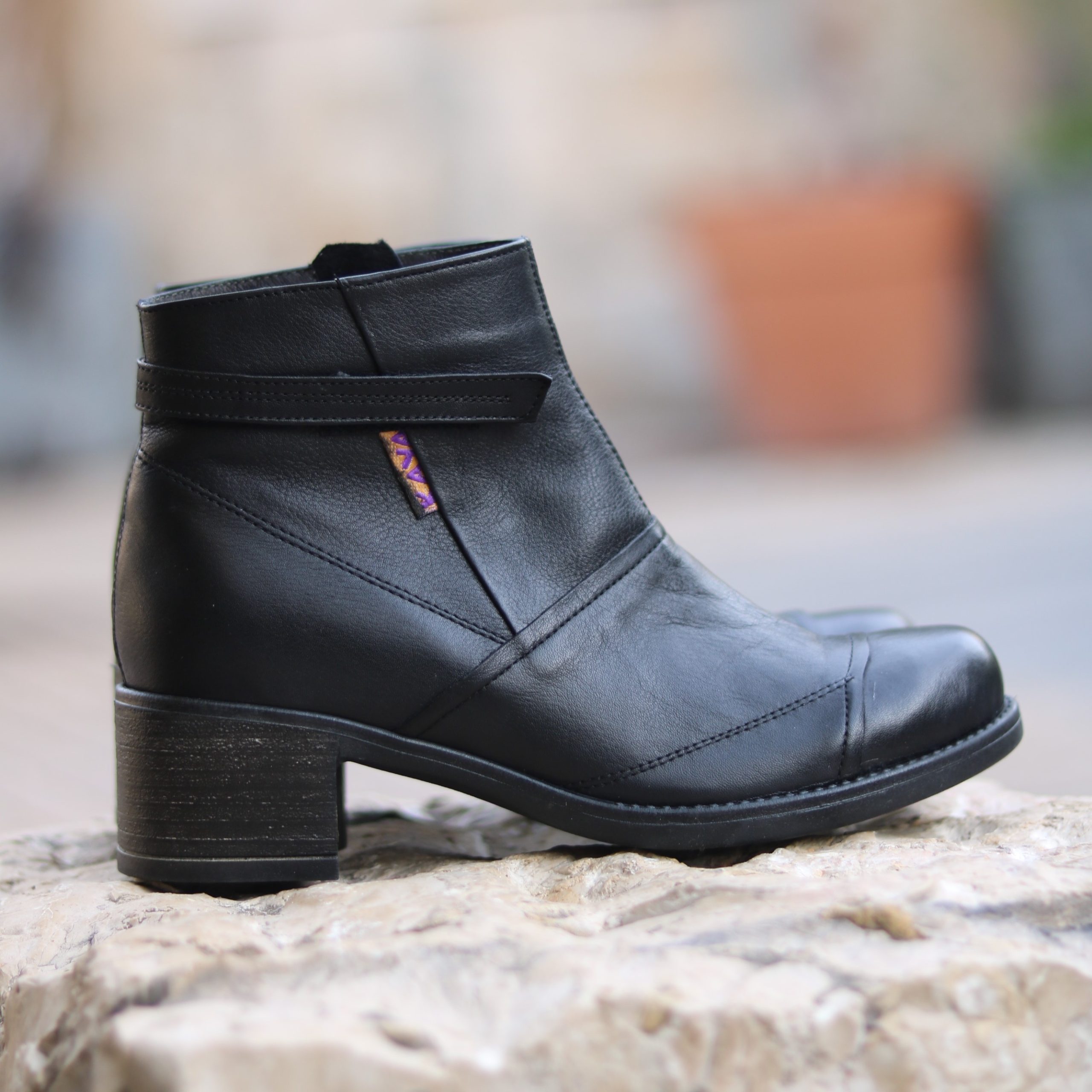 מגף קרסול עם סוליה רחבה לנוחות מקסימלית. גובה עקב 5 ס"מ.