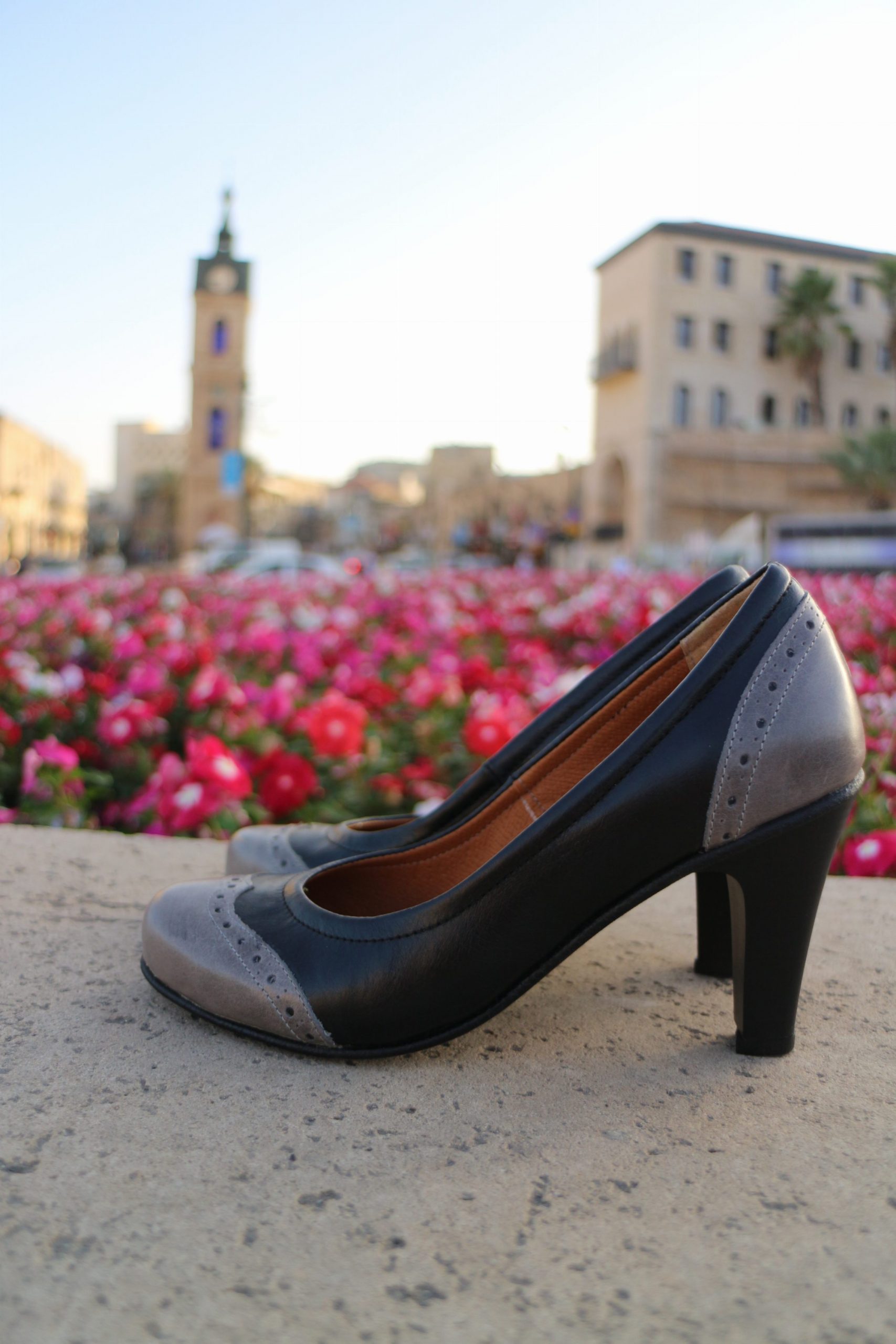 סירה קלאסית בשני צבעים עם עקב 7 ס"מ
