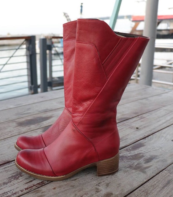 מגף טלאים גבוה עם עקב 5 ס"מ. קיימת אופציה להרחבת היקף השוק באמצעות גומי נסתר. זמין במידות 33-45